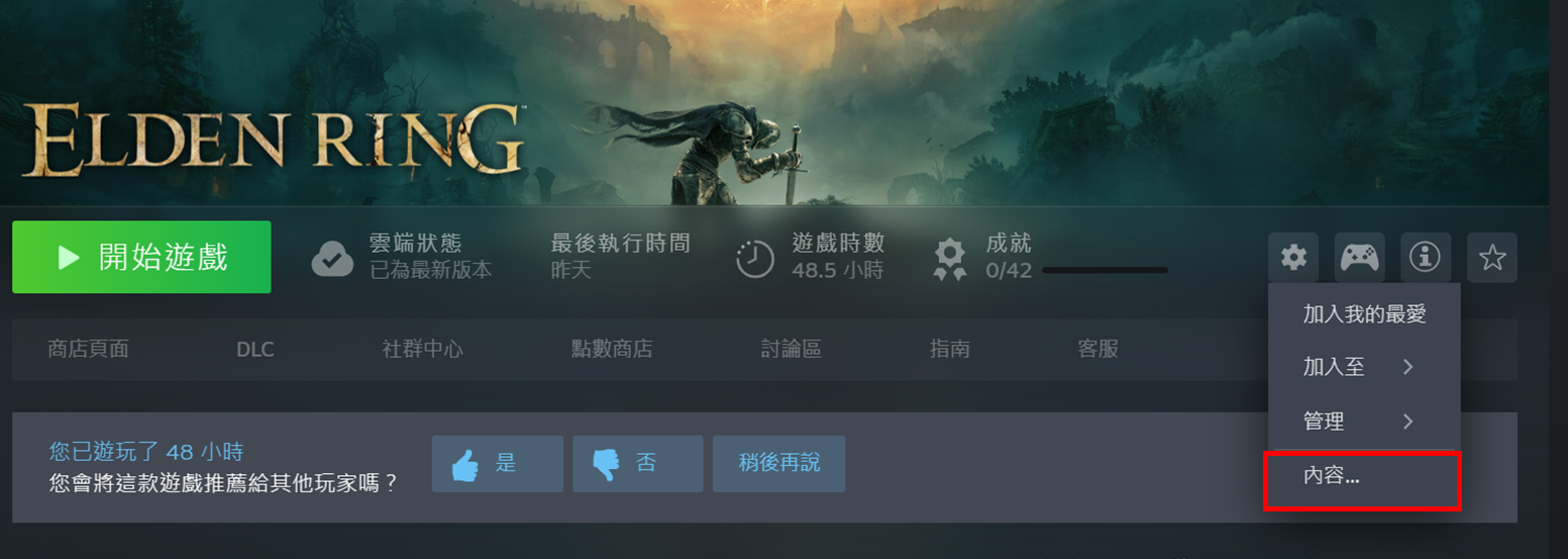 從遊戲引擎中找到屬性頁面(本說明以遊戲引擎Steam為例),然後在啟動遊戲之前選擇視窗模式。