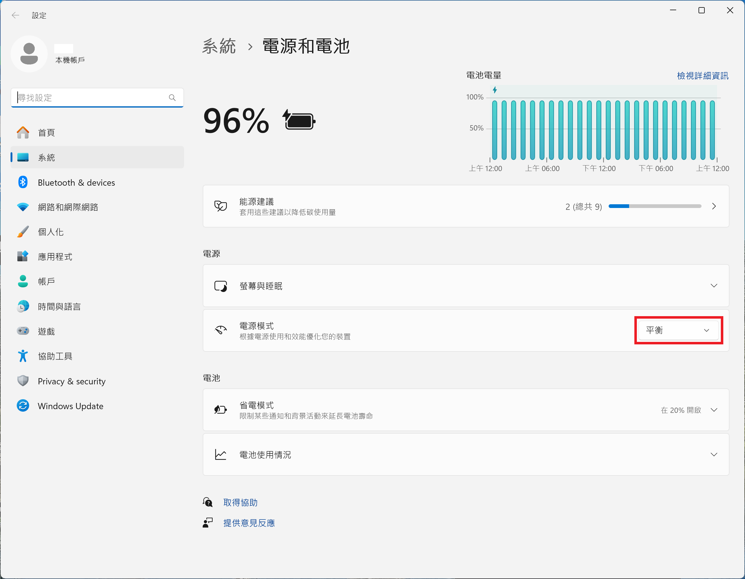 2. 將 Windows 11 電源模式保持在「平衡」。