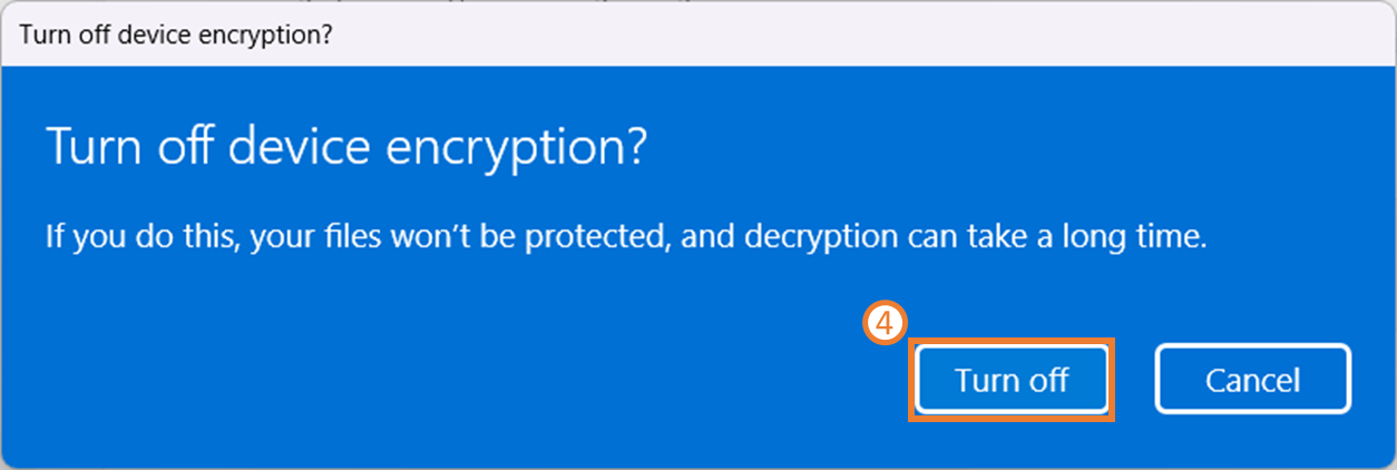 4. When popping up the confirmation, click "Turn off" to disable device encryption.